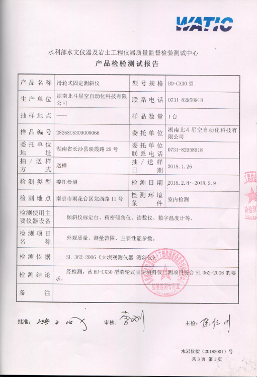 BD-CX30型滑轮式固定测斜仪检测报告
